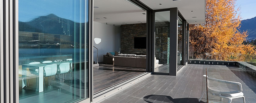 Купить алюминиевые раздвижные системы. Они отличаются материалом профиля. Он изготавливаются на основании алюминиевого сплава. Это легкий, но весьма прочный материал. При этом толщина профиля будет небольшой. Поэтому, данный вариант остекления отлично подходит для частных домовладений. Например, таким образом можно остеклить все стенную дома, которая выходит на веранду или террасу.
